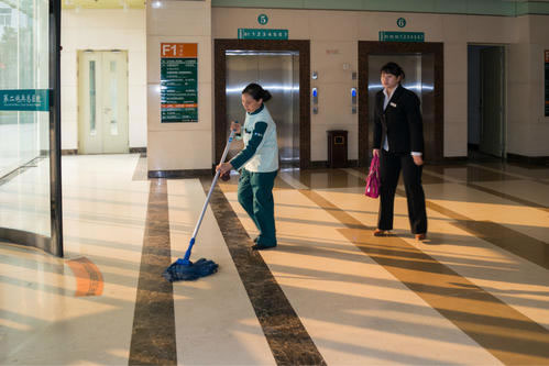 標淮: ①保持地面大理石無腳印、無污跡、無煙蒂、無痰跡、無垃圾。 ②大堂內(nèi)的其它部位,如柱面、墻面、臺面、欄桿、椅子、沙發(fā)、燈座等,保持光亮、整潔、無灰塵。